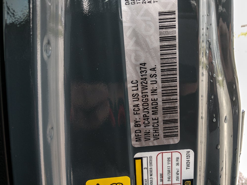 Convenience Group: Emergency/Assistance Call; 2-Door Passive Entry. Front Door Locks; Remote Start System; Cluster 7.0" TFT Color Display; Universal Garage Door Opener; Heated Front Seats; Air Conditioning W/Auto Temp Control; Heated Steering Wheel; Air Filtering. Quick Order Package 24S Sport S: Advanced Brake Assist; 17" X 7.5" Gray Wheels; Power Heated Mirrors; Enhanced Adaptive Cruise Control; Automatic Headlamps; Deep Tint Sunscreen Windows; Corning Gorilla Glass; Premium Wrapped Steering Wheel; Security Alarm; Sun Visors W/Illuminated Vanity Mirrors; Full Speed Forward Collision Warning Plus. LED Headlamp & Fog Lamp Group: Front LED Fog Lamps; LED Premium Reflector Headlamps. Trailer Tow & Aux Switch Group: Class II Receiver Hitch; 7 & 4 Pin Wiring Harness; Auxiliary Switches. Quick Order Package 23S Sport S: Advanced Brake Assist; 17" X 7.5" Gray Wheels; Power Heated Mirrors; Enhanced Adaptive Cruise Control; Automatic Headlamps; Deep Tint Sunscreen Windows; Corning Gorilla Glass; Premium Wrapped Steering Wheel; Security Alarm; Sun Visors W/Illuminated Vanity Mirrors; Full Speed Forward Collision Warning Plus. Sky One-Touch Power Top. MOPAR HD Rock Slider W/Step Assist. Alpine Premium Audio System. Anvil Clearcoat. MOPAR All-Weather Floor Mats. **Equipment listed is based on original vehicle build and subject to change. Please confirm the accuracy of the included equipment by calling the dealer prior to purchase.**