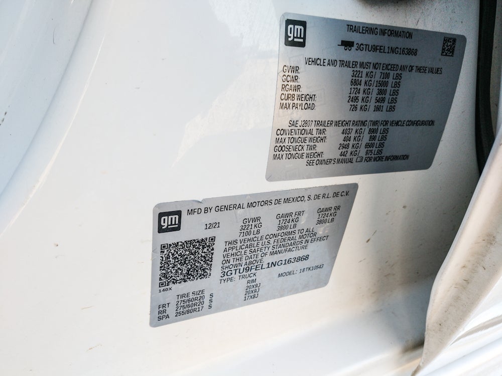 Driver Alert Package I: Ultrasonic Front and Rear Park Assist; Rear Cross Traffic Alert; Lane Change Alert with Side Blind Zone Alert. Preferred Equipment Group 5SA: HD Rear Vision Camera; LED Cargo Area Lighting; Chrome Wheel to Wheel Assist Steps; Remote Vehicle Starter System; 2 USB Ports (1st Row); Power Sliding Rear Window with Rear Defogger; Safety Alert Seat; Hill Descent Control; Electric Rear-Window Defogger; Floor-Mounted Center Console; Theft Deterrent System (unauthorized Entry); Signature Denali Grille; 170 Amp Alternator; 20" X 9" Multi-Dimensional Polished Aluminum Wheels; Auxiliary External Transmission Oil Cooler; Heavy-Duty Air Filter; Compass; Trailering Package; 120-Volt Instrument Panel Power Outlet; Chrome Recovery Hooks; Adaptive Ride Control Suspension; Wireless Charging; Steering Wheel Audio Controls; GMC Connected Access Capable; Universal Home Remote; Color-Keyed Carpeting Floor Covering; OnStar and GMC Connected Services Capable; Power Front Passenger Windows with Express Up/down; 2-Speed Transfer Case; Deep-Tinted Glass; Spray-On Pickup Bed Liner with Denali Logo; Power Rear Windows with Express Down; Integrated Trailer Brake Controller; Premium GMC Infotainment System Radio with Navigation; Power Front Windows with Driver Express Up/down; Manual Tilt-Wheel and Telescoping Steering Column; Rear Dual USB Charging-Only Ports; 275/60R20SL AT BW Tires; Keyless Open and Start; Wi-Fi Hotspot Capable; ProGrade Trailering System; Rear Wheelhouse Liners; 12-Volt Rear Auxiliary Power Outlet; 2 USB Ports; Auto-Locking Rear Differential; Power Door Locks. White Frost Tricoat. Wheel Locks (set of 4). **Equipment listed is based on original vehicle build and subject to change. Please confirm the accuracy of the included equipment by calling the dealer prior to purchase.**