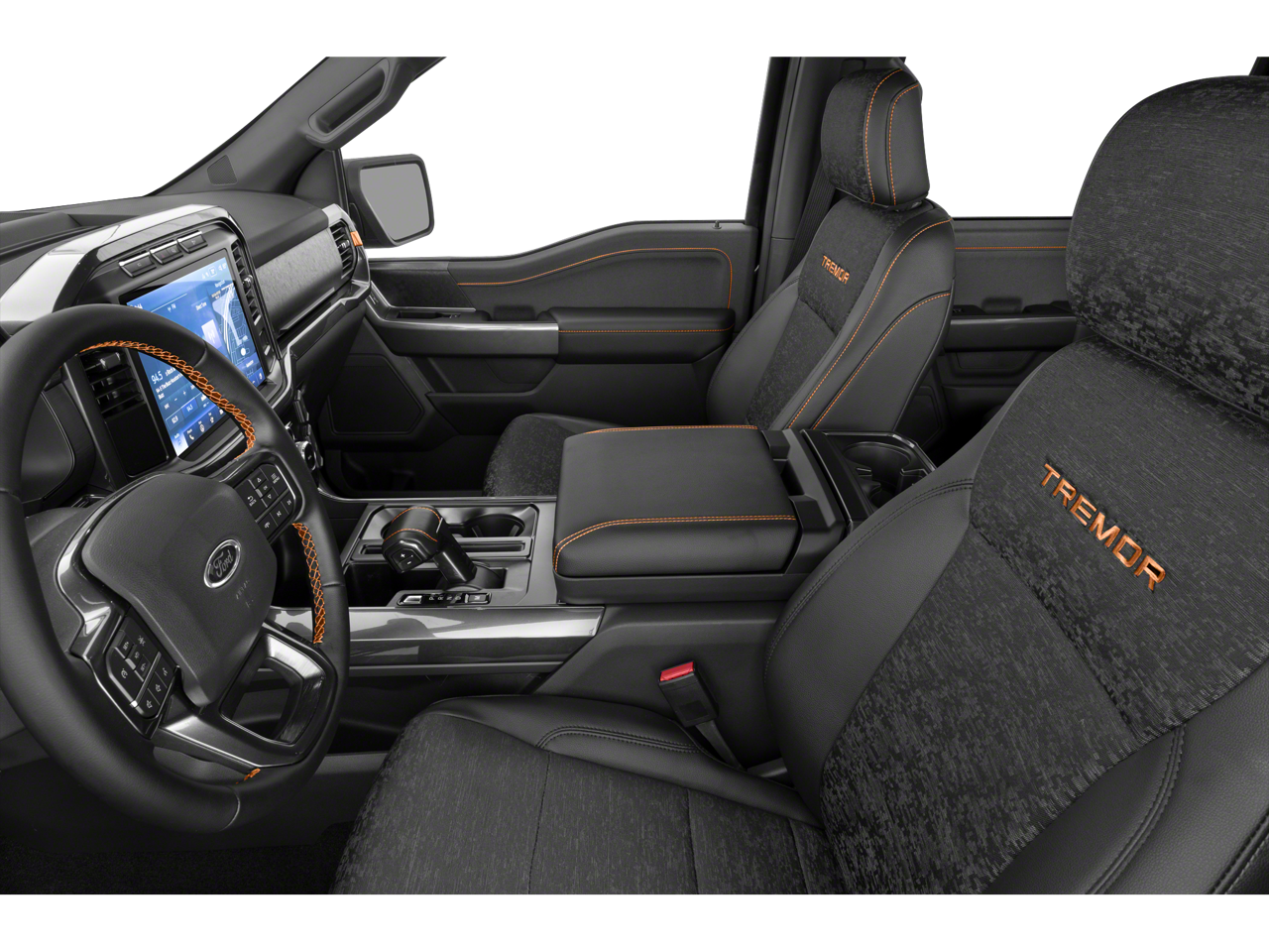 Ford Co-Pilot360 Assist 2.0: Connected Built-In Navigation; Intersection Assist; Evasive Steering Assist; Intelligent Adaptive Cruise Control with Stop and Go. Equipment Group 402A High: Electronic Locking with 3.73 Axle Ratio; Electronic 10-Speed Automatic Transmission; Rain-Sensing Wipers; Power Tilt/telescoping Steering Column with Memory; 7. 050 lbs Payload Package GVWR; 2-Speed Automatic AWD with Mechanical Locking 4WD; Unique Tremor Leather-Trimmed Bucket Seats; 5.0L V8 Engine; Power-Sliding Rear Window; Wireless Charging Pad; Power-Adjustable Pedals with Memory; LED Projector with Dynamic Bending Headlamps; 18" Alloy with Dark Matte Finish Wheels; Pro Trailer Backup Assist and Pro Trailer Hitch Assist; Hi-Lock Transfer Case; 12" Productivity Screen in Instrument Cluster; 2nd Row Heated Seats; 360 Degree Camera; Power Glass Sideview Mirror with Body-Color Skull Caps; 275/70R18 All-Terrain Tires; Universal Garage Door Opener; Heated Steering Wheel; Advanced Security Pack. Bed Utility Package: BoxLink; Zone Lighting; LED Box Lighting; Tailgate Step with Tailgate Work Surface; Power Tailgate. Trailer Tow Package: Integrated Trailer Brake Controller; Class IV Trailer Hitch Receiver; Pro Trailer Backup Assist and Pro Trailer Hitch Assist. 360 Degree Camera. B&O Unleashed Sound System by Bang & Olufsen Radio. Power-Sliding Rear Window. Integrated Trailer Brake Controller. Partitioned Lockable Fold-Flat Storage. Tray Style Floor Liner. Interior Work Surface. Power-Adjustable Pedals with Memory. BoxLink. **Equipment listed is based on original vehicle build and subject to change. Please confirm the accuracy of the included equipment by calling the dealer prior to purchase.**