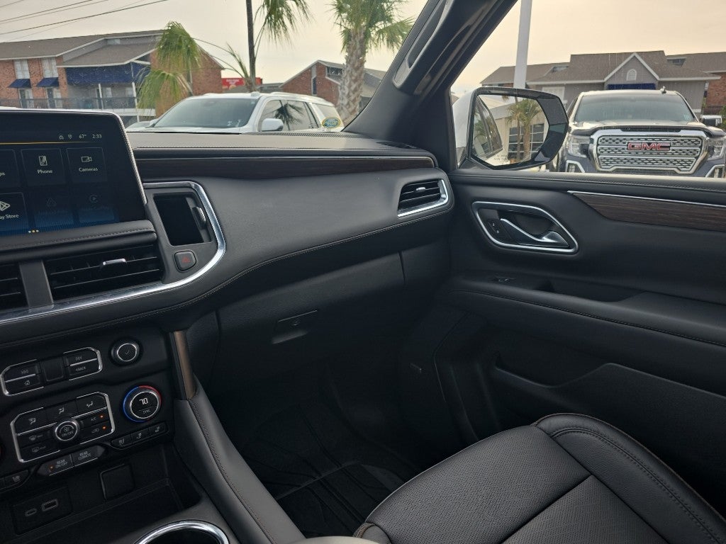 Max Trailering Package: Extra Capacity Cooling System. Advanced Trailering Package: Trailer Side Blind Zone Alert; Smart Trailer Integration Indicator; Integrated Trailer Brake Controller; Hitch View with Pan/zoom Image Adjustment. High Country Deluxe: Dual-Pane Power Panoramic Sunroof; Air Ride Adaptive Suspension; Power-Retractable Assist Steps. Preferred Equipment Group 3LZ: Bright Front and Rear Door Sill Plates; Memory Settings; Perforated Leather Seat Trim; Remote Start; 3rd Row 60/40 Power-Folding Split-Bench Seat; Safety Alert Seat; Chrome Door Handles with Body-Color Strip; Hill Descent Control; 6.2L EcoTec3 V8 Engine; Rear Camera Mirror Washer; Inside Rearview Auo-Dimming Rear Camera Mirror; Heated Steering Wheel; LED Daytime Running Lamps; Rear Cross Traffic Alert; Driver and Front Outboard Passenger Airbags; Wireless Charging; Front High-Back Reclining Bucket Seats; Adaptive Cruise Control; Universal Home Remote; Color-Keyed Carpeting Floor Covering; Heated 2nd Row Outboard Seats; Hands-Free Rear Power Programmable Liftgate; Chevrolet Infotainment 3 Premium System Radio; 2-Speed Active Electronic Autotrac Transfer Case; 1st and 2nd Row Color-Keyed Carpeted Floor Mats; Enhanced Driver Information Center; Floor Console; Lane Change Alert with Side Blind Zone Alert; Dual Exhaust System; SiriusXM with 360L; HD Surround Vision; Wrapped Steering Wheel; Power Tilt and Telescopic Steering Column; 15" Diagonal Multi-Color Head-Up Display; Rear Pedestrian Alert; Bose 10-Speaker Centerpoint Surround Audio System Feature; Magnetic Ride Control Suspension; Power Release 2nd Row Bucket Seats; Enhanced Automatic Emergency Braking; 275/50R22SL AS BW Tires; Outside Heated Power-Adjustable Mirrors. 22" Multi-Spoke Gloss Black Wheels. Power-Retractable Assist Steps. Dual-Pane Power Panoramic Sunroof. Air Ride Adaptive Suspension. 1st. 2nd & 3rd Rows All-Weather Floor Liners (LPO). Black Name Plates. Front and Rear Black Bowtie Emblems. **Equipment listed is based on original vehicle build and subject to change. Please confirm the accuracy of the included equipment by calling the dealer prior to purchase.**